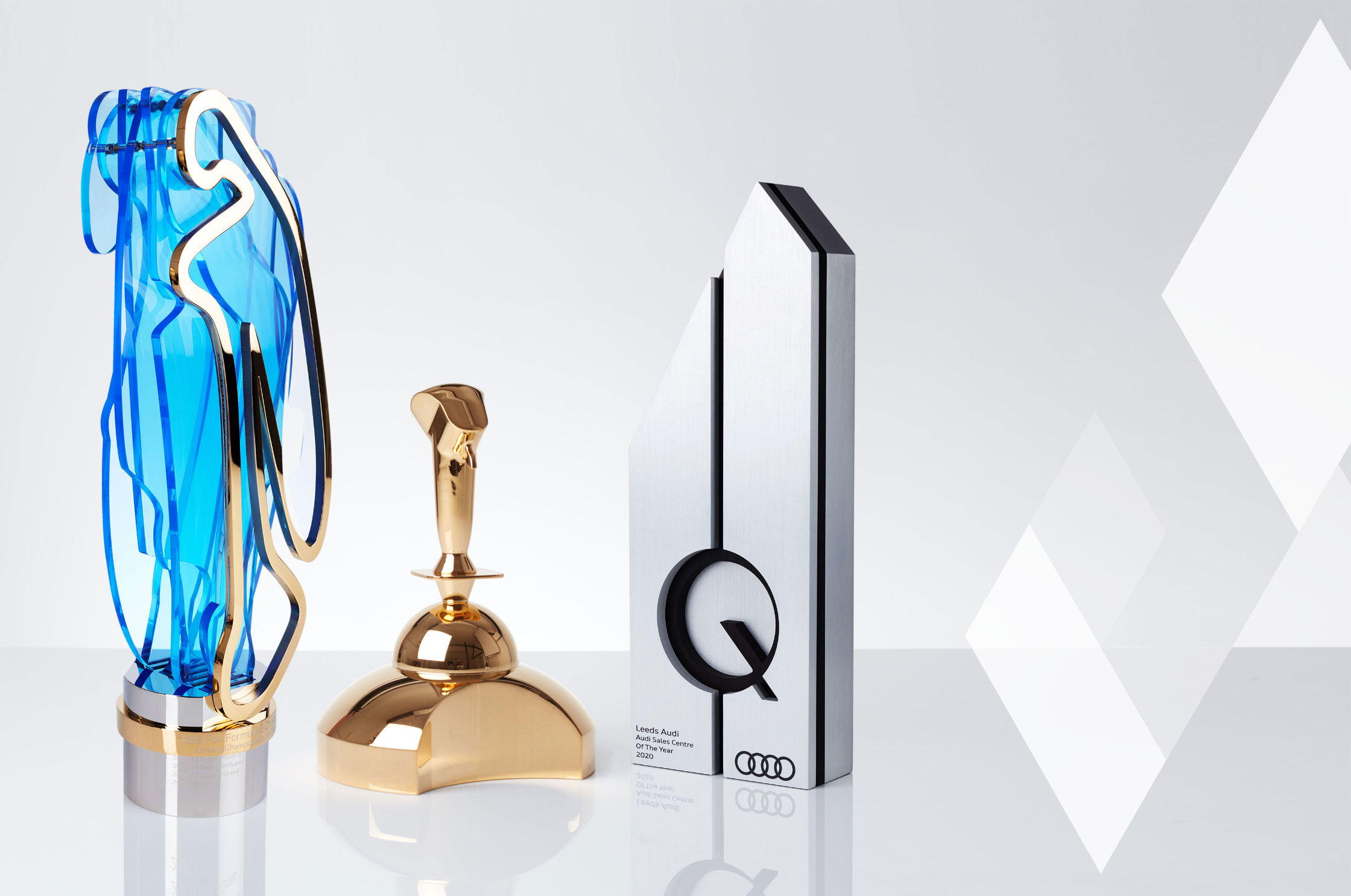 We appreciate every award event has its budget and we always endeavour to create a design that is exceptional, on brand and at the all-important desired price. Costs of awards vary depending on the type of material, number of components, complexity, size, how long it takes to cut, machine, drill and tap, polish and electro plate, the amount of engraving/printing and personalisation and how long it takes to assemble and clean and pack.