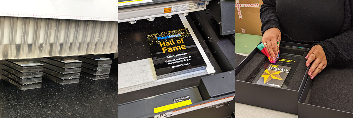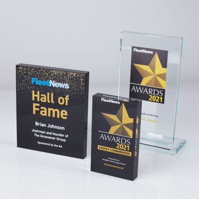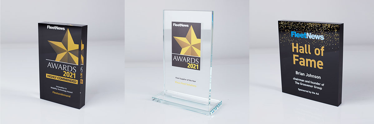 For such a prestigious event in the vehicle fleet industry, we supplied 34 bespoke glass awards for the Winners, 2 black printed acrylic Hall of Fame awards and 25 Laminated acrylic awards for Highly Commended. We went behind the scenes in the on-site manufacturing facility to show the client how these awards were brought to life, and the line-up of different style awards being made, printed and packed. A spokesperson on Fleet News said “It is extremely important to us to know that the awards are actually made on site and you have full control over the production process.  Also that the quality control is carried out by yourselves to ensure a first class, problem free, product is delivered to us.” We pride ourselves on the in house element of our production and know how paramount it is to our clients.