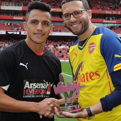 Another football award which we have recently despatched was the Vitality Player of the Month trophy for Premier League club Arsenal FC. Alexis Sanchez was named as the winner for September, evidently polling almost 50% of the vote. The award is made in nickel plated aluminium, complete with the brushed steel effect Vitality logo printed on the front, together with the all important Arsenal badge.