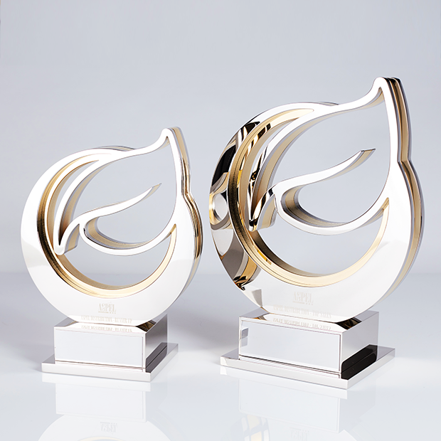 EFX designed and produced the perpetual sales trophies for the top three distributor personnel, reflecting Aspel’s branding and logo. The water droplet design oozes style and is certainly commensurate recognition for outstanding performance. Standing 300mm tall, it captures the graceful silhouette of the water droplet and is achieved in pierced, polished nickel plated aluminium intersected by a layer of gold (plate). The winners’ names are to be engraved on the plinth plate and attached with magnets; they will be updated each year.