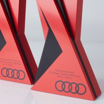 With the introduction in 2023 of Audi Q’s first Half Year internal awards, they needed something extra special to reward their employees. With lots of great award options offered by us here at EFX, Audi Q agreed this design looked the most premium. Typically, the winners’ trophies are on public display for several years and therefore the design not only needs to resonate as high value but achieve timeless appeal and powerful branding.
