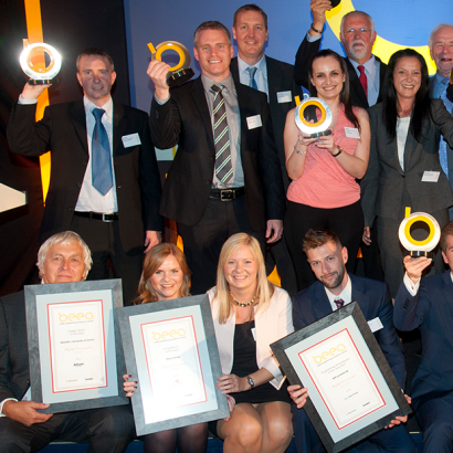 The design selected majors on the “B” of the BEEA logo, achieved in brushed nickel plated aluminium, with an inner yellow, acrylic centre and standing on an anodised aluminium plinth. The graphics feature a combination of digital printing and laser engraving – precisely applied to the surface of the plinth. The resulting trophies realised the client’s brief: “The British Engineering Excellence Awards are well respected within the industry and the award has to match our guests’ expectations. The final design provided a high quality, prestigious award that the winners were proud to receive”.