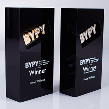 The new trophies are contemporary and compelling: fitting for the biggest event on the calendar for young professionals in Birmingham. Manufactured in black, cast acrylic, they are impressively heavy and imposing, decorated with immaculate detailing. The event’s BYPY logo is recessed and highlighted in gold-plated aluminium for the overall winner and picked out in nickel- plated aluminium on the trophies for the individual category winners. Each award is personalised in bright, white print with the winner’s name and award category.