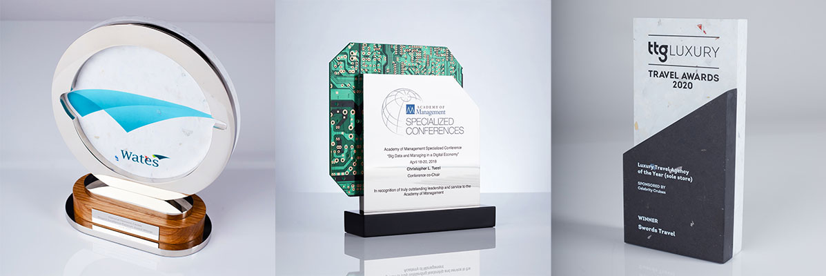 But there are even more innovative ways you can include recycled materials in your awards. For example, at EFX we’ve designed trophies that incorporate additional recycled features, such as circuit boards. Not only do these mean there’s less waste going to landfill – they look fantastic too!