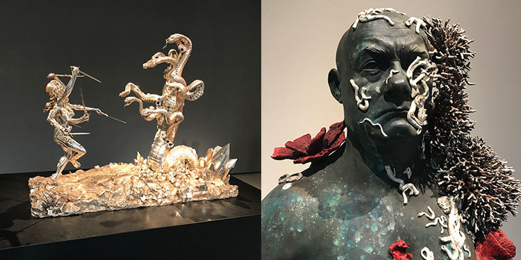 Having read up about the exhibition before I went, I knew a little about its inception. Ten years in the making, Hirst and his studio have created the 100 treasures brought up from an imaginary ship-wreck found off East Africa. The artefacts are suggested to be over 2000 years old, many are barnacled and coral-encrusted and have references to a myriad of cultures, including Aztec, Chinese and Greek mythology. However, in true Hirst style, he then sends up his own work and features celebrity look-a-likes and makes references to 21st century fake news amidst the so-called treasures.