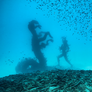 Having read up about the exhibition before I went, I knew a little about its inception. Ten years in the making, Hirst and his studio have created the 100 treasures brought up from an imaginary ship-wreck found off East Africa. The artefacts are suggested to be over 2000 years old, many are barnacled and coral-encrusted and have references to a myriad of cultures, including Aztec, Chinese and Greek mythology. However, in true Hirst style, he then sends up his own work and features celebrity look-a-likes and makes references to 21st century fake news amidst the so-called treasures.