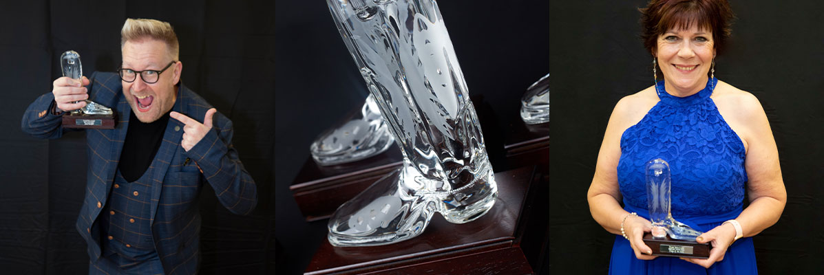 There’s a clue in the name for the award for the Crystal Boot Awards… Of course the award had to be made out of a high quality etched crystal, then mounted onto a wooden base. Although quite a delicate material, so many different shapes and designs can be created out of crystal. It also captures and reflects the light so beautifully so is the perfect option for a glittering award ceremony like this one! We were honoured to create this infamous design for Linedancer.