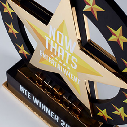 Special EFX has been commissioned to design and manufacture the ultimate accolade that every contestant will have their eye on – the glittering winner’s trophy. Standing a formidable 410mm tall and almost as wide, the central 24kt gold plated star motif makes a striking statement mounted on the black, anodised band. The winner’s details will be digitally printed on the three-tiered plinth.