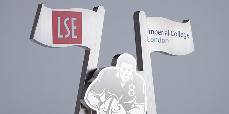 The John Lipscombe Memorial Trophy is named after John Lipscombe, who studied at both universities in the early 1960s, rowed for ICL and played rugby on both sides. Oliver Marsden of the LSE team earned the accolade of Men’s Player of the Match and was presented with the newly created trophy, made by EFX. The design, which so powerfully portrays the key elements of the game features an attacking rugby player, ball in hand and the rugby posts behind him, and is made in brushed nickel plated aluminium with a contrasting, black anodised base. The finer details are achieved with digital printing and laser engraving.