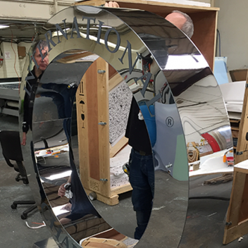 The three IWC giant awards were manufactured from a combination of rigid and flexible MDF and clad in a mirror-finished acrylic, printed with the IWC logo. As with the metal trophies, each of the mega-sized versions were constructed as three components, ring, text and angled plinth, and precision-cut on a CNC driven router. The final, assembled logos are mounted on castors.