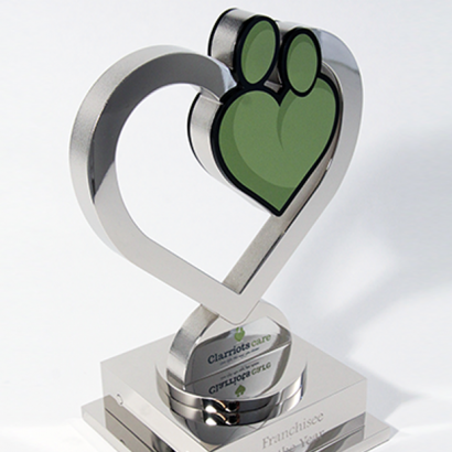 Heart inspired perpetual trophy for first Clarriots Care Franchise Awards