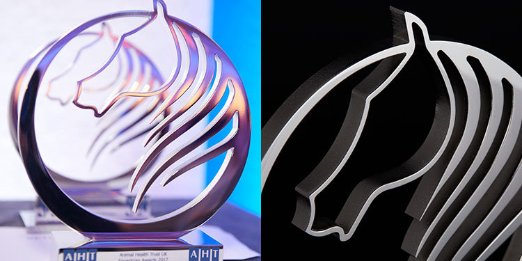 The trophies depict the outline of a horse’s head with flowing mane, skilfully pierced from solid aluminium and then nickel plated and mounted on a digitally printed plinth. As much works of art as trophies, they proved hugely popular: “We were delighted with the trophies, and in fact a few of our winners got in touch the next day to tell us how they had really enjoyed their night and how pleased they were with their trophies! We also really liked their relevance to the equestrian event and their high quality finish”.