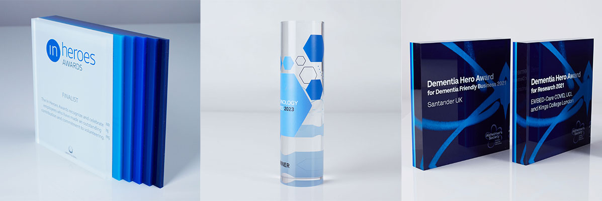 Its versatility and fantastic array of colour and design options make it a really good option for unique and quirky award designs, and if you choose recycled acrylic, you can even maintain your green credentials.