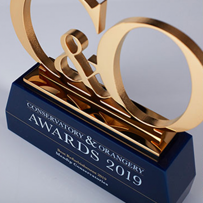 Highlighting excellence and innovation in an industry sector is a prime objective for trade media. In the aspirational world of designer conservatories and elegant orangeries, Glass & Glazing Products Magazine (GGP) has recently hosted the first ever Conservatory and Orangery Awards (C&O Awards), to put the spotlight on those businesses creating the exceptional. Special EFX teamed up with the magazine’s in-house studio to create an exclusive tiered trophy design, in cast acrylic and gold, that the winners were proud to receive.