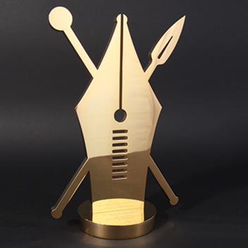 This annual literary prize recognises the author of a newly published novel that “best captures the spirit of adventure writing”. The reward is suitably impressive – £10,000, as was the trophy made by EFX. The trophy design speaks of Africa and adventure writing, combining symbolic elements, all made in pierced aluminium and gold plated, and standing 30cm tall.