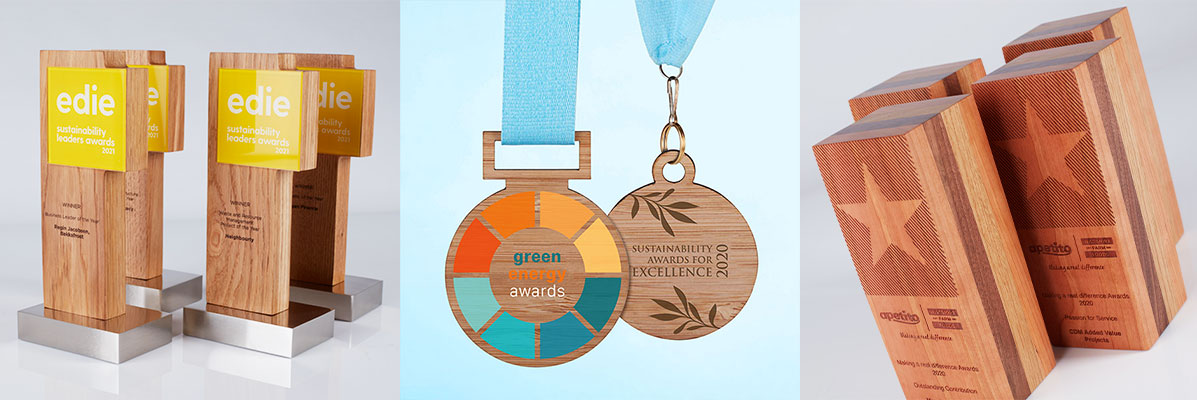 Wood is often the go-to eco trophy material for most people, but it is important to check that your awards designer is using sustainably sourced wood – not all manufacturers do.