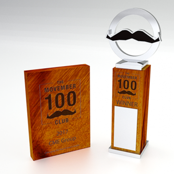 Tapping into the power of teamwork in the work place, the Movember Foundation introduced the Movember 100 Club in 2017; a key annual campaign is to inspire corporate teams to band together to raise £10,000 or more. This will be an annual event and apart from the obvious kudos of winning, the ultimate accolade is the winner’s trophy, which has been manufactured especially by EFX and is a perpetual design.  The “big lump of wood”, otherwise known as a plinth, is made in sustainable iroko, laser engraved and features a brushed stainless steel name plate, magnetically attached. The iconic MO emblem of the legendary moustache stands proudly on the plinth, manufactured in solid aluminium, finished in brushed nickel plate and digitally printed.