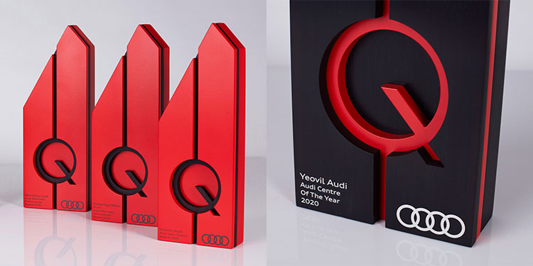 The Q Power Awards is an annual, high-profile event which has been running since 2009. The Awards both recognise and reward top-performing dealerships; winning is a much-coveted accolade amongst the Audi UK centres. Typically, winners’ trophies on public display for several years and therefore the design not only needs to resonate as high value but achieve timeless appeal and powerful branding.