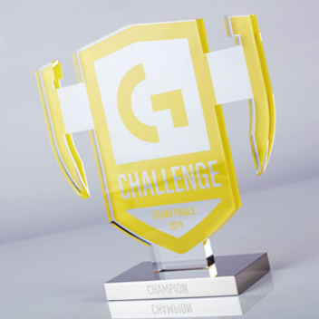 Engraved medals and acrylic G Challenge 2019 trophy