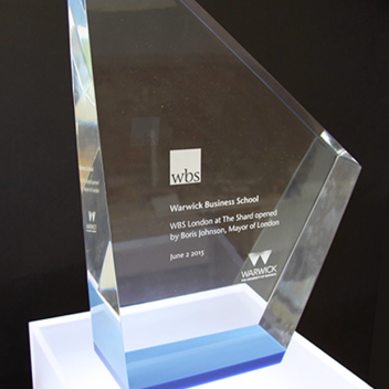Mayor of London Boris Johnson has unveiled a specially created sculpture to commemorate the opening of Warwick Business School’s (WBS) new base at The Shard, London. The unique piece of art is cast out of acrylic and stands on a blue platform, which is illuminated from the metal based plinth below with striking effect. Special EFX manufactured the complete installation.