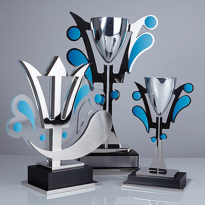 The striking designer collection combines finely-spun cups, incorporating contemporary materials and effects such as mirror and anodised finished nickel plate and acrylics, plus precision-engineered aluminium trophies and digitally printed medals. These modern-day sporting trophies set new standards for 21st century sporting events and will certainly transform the traditional trophy display-cupboards of leading sportsmen and women around the world.