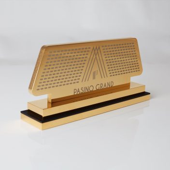 The plinth style award is incredibly popular for competition type awards as it represents that typical winning ‘trophy’ feel, this feature with an added layer of black acrylic in the base elevates the design. With the striking ‘building inspired’ design laser engraved onto the high shine 24ct Gold Plated aluminium, a sparkling luxury trophy is the finished result. Aligning with the casino’s vision for this year’s events!