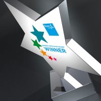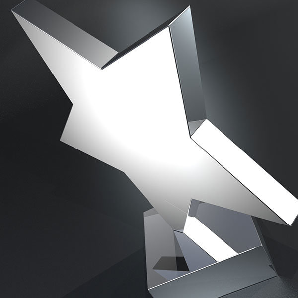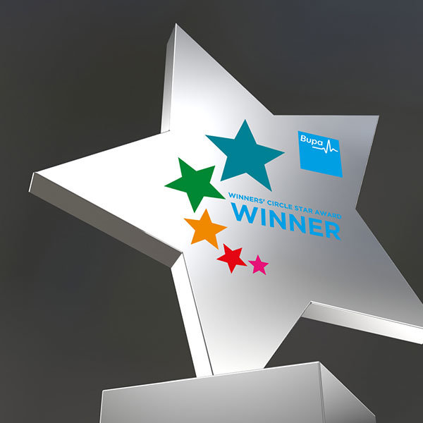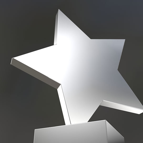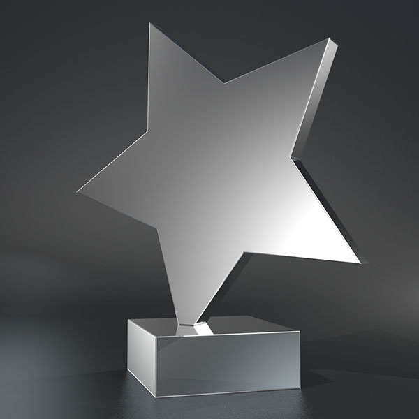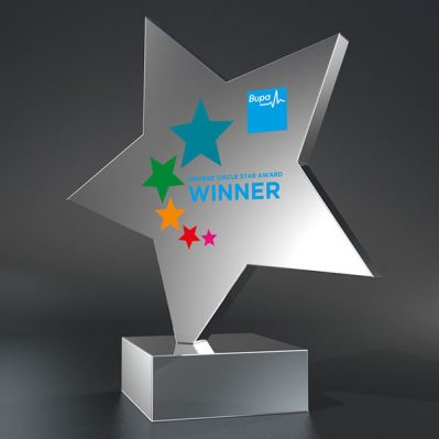 Star Award in Polished Nickel Plated Aluminium. Each piece can be personalised with laser engraving or printing of your logo and winner text.