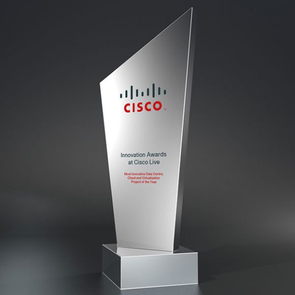 Peak Award in Polished Nickel Plated Aluminium. Each piece can be personalised with laser engraving or printing of your logo and winner text.