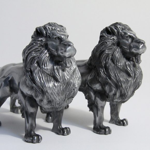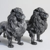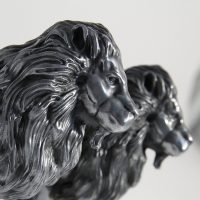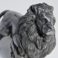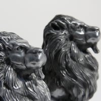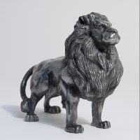 Stunning lion award is cast in silver finish resin and mounted on a black wooden base with plate for personalisation.