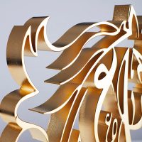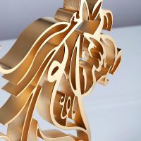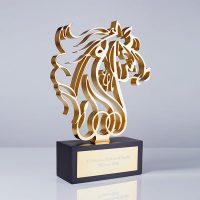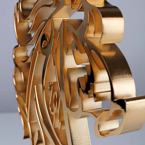 Intricately pierced polished gold plated and black anodised aluminium award.