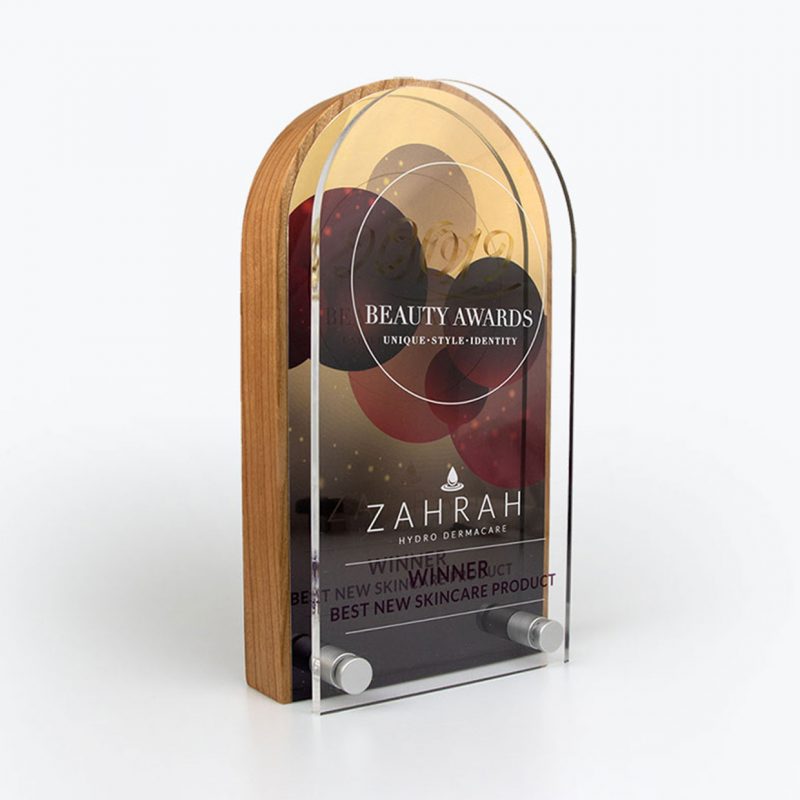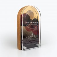 Arch Wood Trophy with Metal Face Plate & Acrylic Front