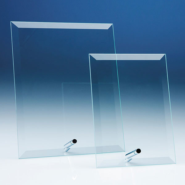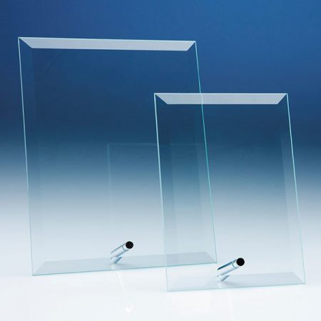 A stylish, inexpensive recognition award, the vertical flat plaques are available in 3 sizes and have a polished edge, bevel on all 4 sides and chrome pin stand. They have a large engraving area that can be personalised with any logo, crest and wording to mark a sales achievement, sporting success or just to acknowledge a job well done. They are supplied in individual white gift boxes.
