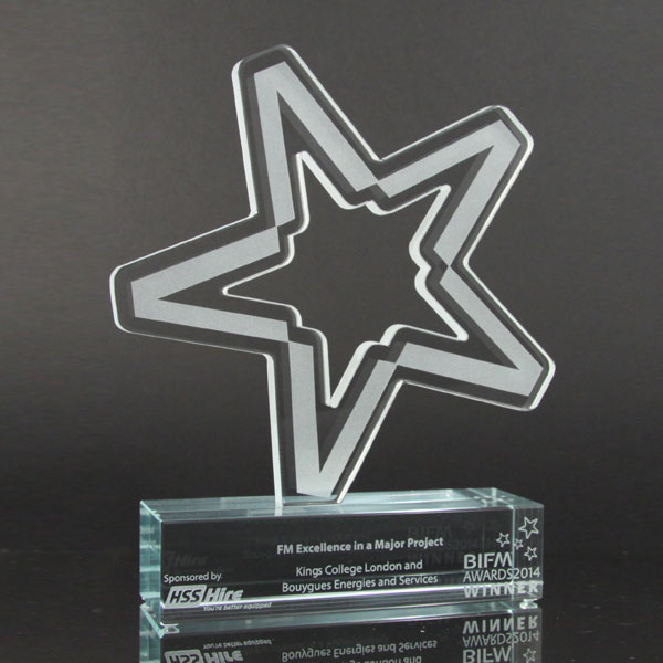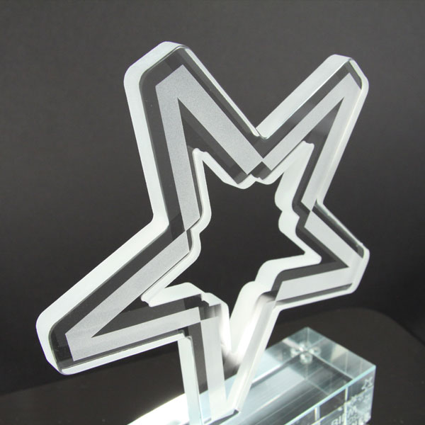 Unique profiled glass award with frosted edges. Combined with a clear glass base to form an impressive bespoke award.