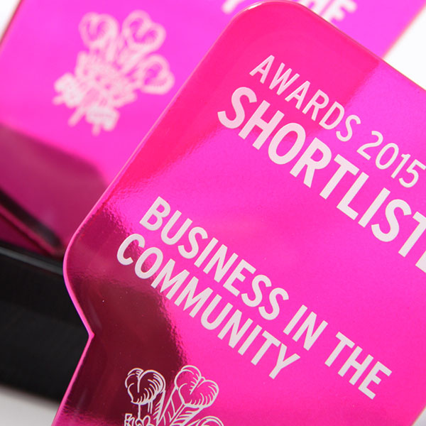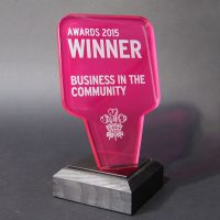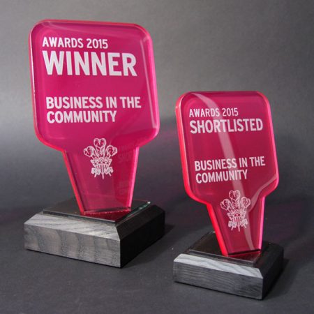 Each award is personalised by laser engraving directly onto a metal plate fixed to the base.