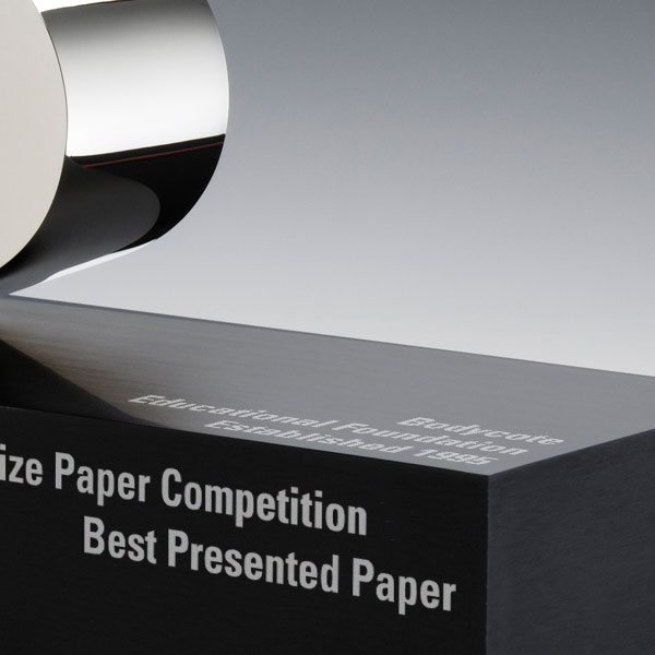 Each award is personalised by laser engraving directly onto the nickel plated aluminium base.