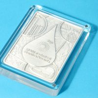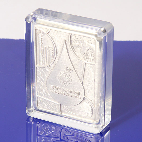 Beautiful cast sterling silver ingot held in a magnetic cast acrylic case.