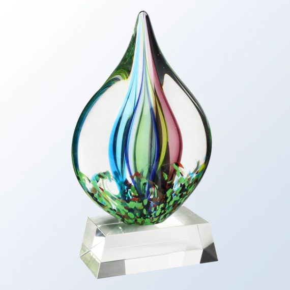 This art glass has many layers of color and glows under light. With an optic crystal base this award makes a bold and stylish statement.