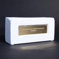 Each award is personalised by laser engraving directly onto the recessed gold plate.