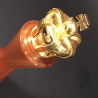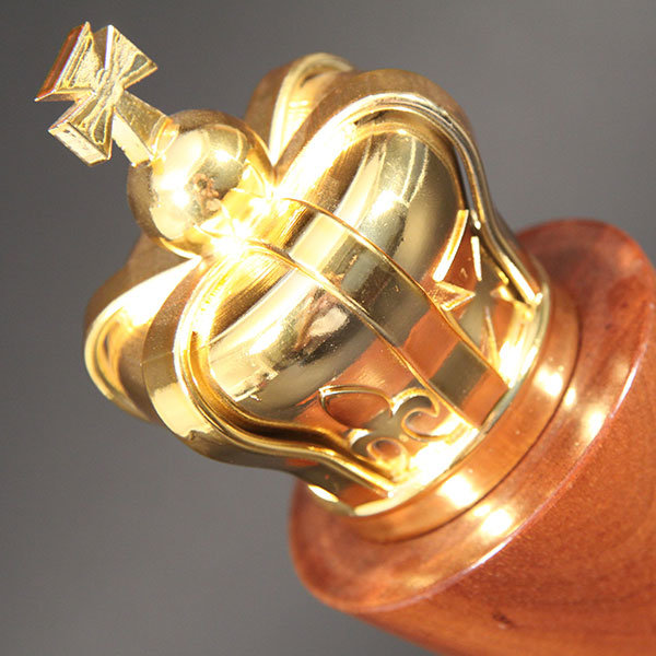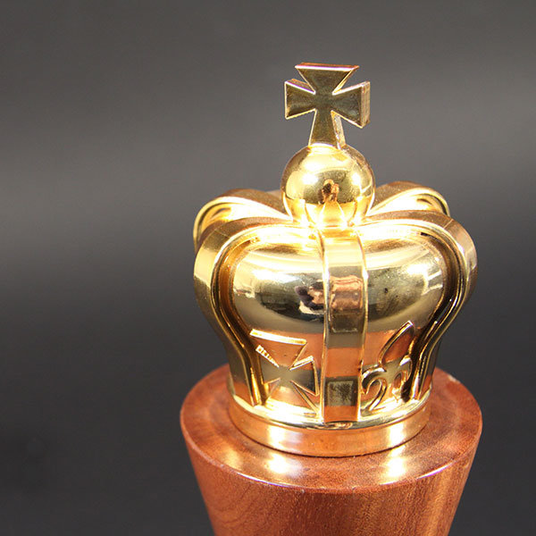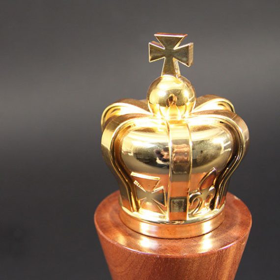 3D printed crown with a sprayed gold surface finish. Combined with turned wood to form a unique award.