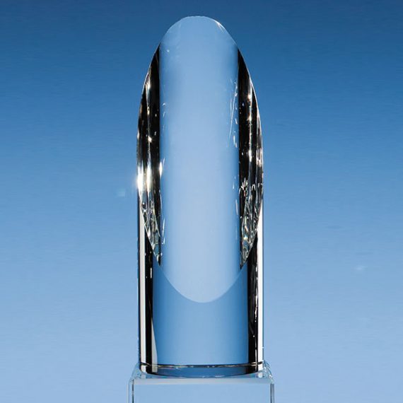 The perfectly clear optic crystal Cylinder awards are hand crafted and are available in 3 sizes. The simple design and large engraving area enable the Cylinder to be personalised with any crest, logo or wording to create an award that is sure to take pride of place when put on display at home or at work. They are ideal recognition, achievement or incentive gifts and can be combined with a 3″ x 3″ optic crystal base, as shown, the base should be ordered separately. They are supplied in a black foam lined presentation box.