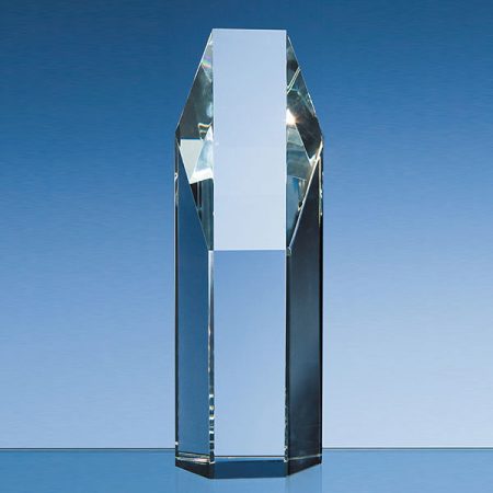 The optic Hexagons have been one of our most popular awards over the years, they are hand crafted out of perfectly clear optical crystal and are available in 3 sizes. The sloped face on the top of the hexagon can be personalised with any crest, logo or wording to create an award that is sure to take pride of place when put on display at home or at work. They are ideal recognition, achievement or incentive gifts and can be combined with a 3″ x 3″ optic crystal base, as shown, the base should be ordered seperately. They are supplied in a black foam lined presentation box.