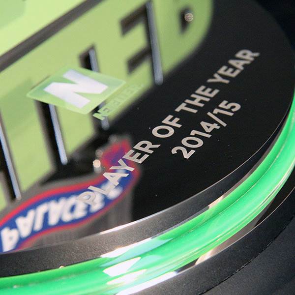 Each award is personalised by laser engraving directly onto the top of the base.