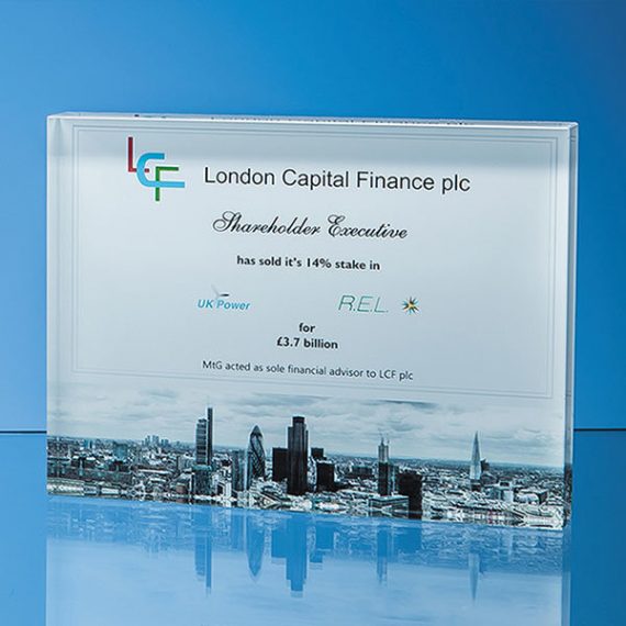 Simple but substantial, this impressive, rectangular optical crystal award can be used horizontally or vertically. Available in four sizes, each award can be used individually or choose a range of sizes where a number of levels of achievement are to be awarded. Ideal for academic, sporting or corporate awards or as a commemorative gift. Each award can be printed on the reverse with full-colour graphics. With a generous area to engrave a crest, company logo or message, it comes in its own foam lined presentation box.