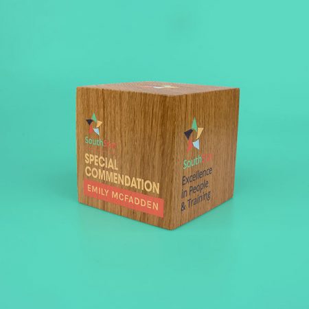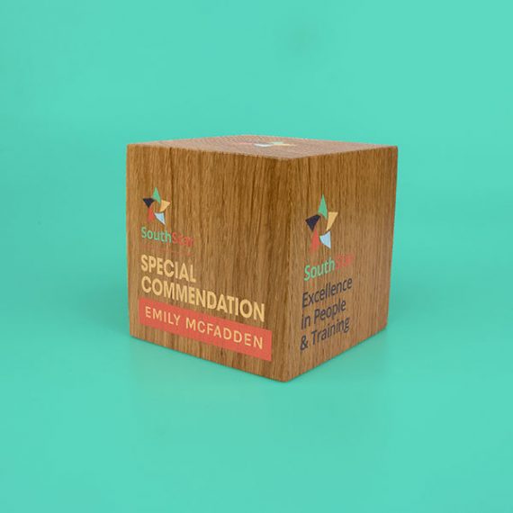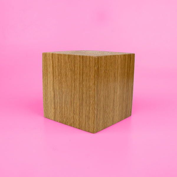 Oak cube. Responsibly sourced, individually unique and 100% recyclable.