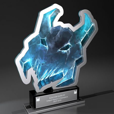 Polished aluminium combined with acrylic and iconic printed imagery to form this distinctive trophy.