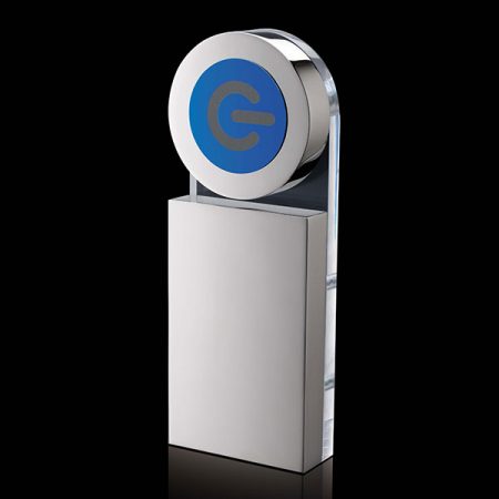 This gorgeous Gadget show award uses polished nickel plated aluminium & clear acrylic to create a clever ‘floating’ effect.