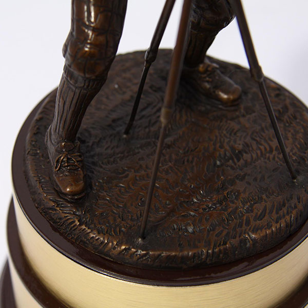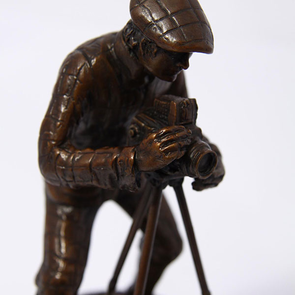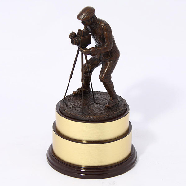 Bronze sculpture with three tier mahogany base. The ‘photographer’ was sculpted by hand in clay then cast to produce this unique award.