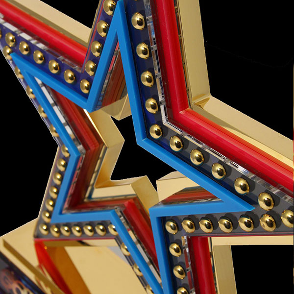 Designed in collaboration with the Art Director for the show, and made by Special EFX, the Star design was made from solid aluminium adorned with gold plated studs.