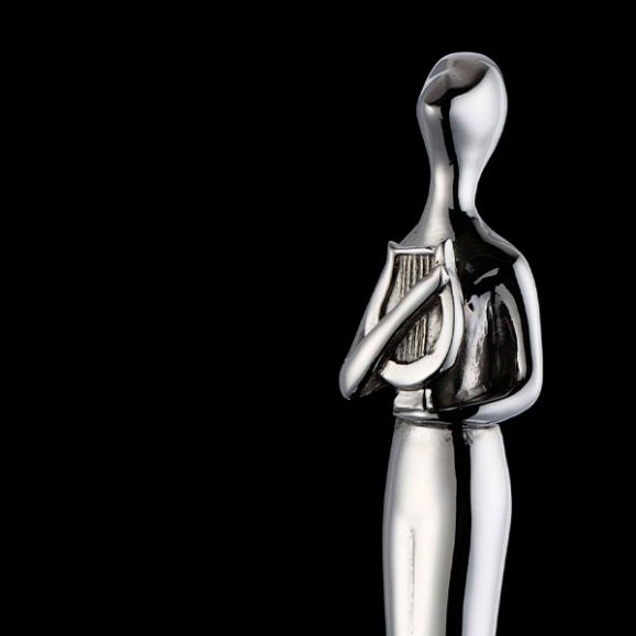 The figure was sculpted by hand in clay then cast to produce this distinctive award.