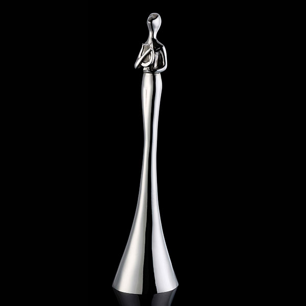 Stunning cast figurine with lyre in nickel plated aluminium.